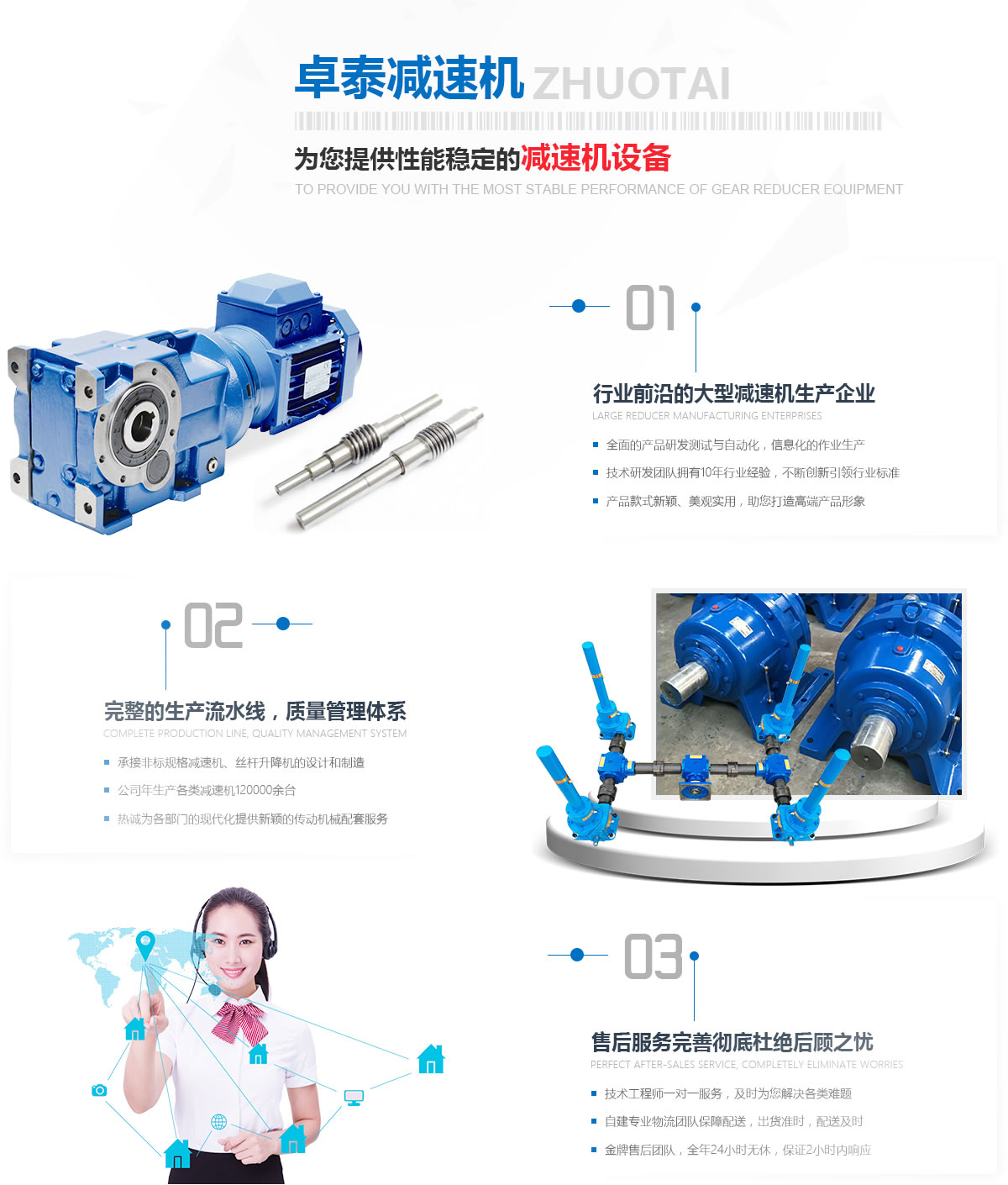 寰峰窞鍗撴嘲鍑忛熸満鏈夐檺鍏徃鏄崕鍖楀湴鍖虹殑鐢熶駭鍑忛熸満鐨勪笓涓氬叕鍙革紝浼佷笟鍗犲湴闈㈢Н涓や竾浣欏鉤鏂圭背錛屽凡鏈夎繎浜屽崄騫寸敓浜у埗閫犵粡楠屻備富瑕佺敓浜х粡钀ワ細(xì)WH銆丠W銆丆W銆丼CW銆乄S銆乄D銆乄XJ銆乄SJ緋誨垪鍦嗗姬榻匡紙鏅氾級(jí)鍦嗘煴铚楄疆铚楁潌鍑忛熸満錛汿PS銆乀PU銆乀PA緋誨垪騫抽潰浜屾鍖呯粶铚楄疆鍑忛熸満錛沊銆丅緋誨垪鎽嗙嚎閽堣疆鍑忛熸満錛汼WL緋誨垪铚楁潌涓濇潬鍗囬檷鏈猴紱澶у瀷鍠風(fēng)亴璁懼涓撶敤鍑忛熸満錛涚數(shù)鐐変笓鐢ㄥ噺閫熸満絳夈傝繕鍙壙鎺ュ悇縐嶉潪鏍囧噺閫熸満鍙?qiáng)閰嶄欢鐨勮璁″姞宸ャ傚崜娉版満姊板緇堝潥鎸佲滆川閲忕涓錛屽鎴蜂負(fù)鏈濈殑鎬濇兂銆備粠涓嶆澗鎳堝湪浜у搧璐ㄩ噺涓婄殑瑕佹眰錛屽浜庢瘡涓浠朵駭鍝侀兘緇忚繃璁ょ湡鐨勮川閲忔妸鍏籌紝紜繚瀹㈡埛鐨勬弧鎰忎綑璁ゅ彲銆備笉鏂姞澶у璐ㄩ噺鐨勬姇鍏ワ紝鏄痙宸炲崜娉板噺閫熸満鏈夐檺鍏徃鑾峰緱楂樿川閲忎駭鍝佺殑閲嶈淇濊瘉銆? 寰峰窞鍗撴嘲鍑忛熸満鏈夐檺鍏徃浠ョ敤蹇冪粡钀ャ佸畬緹庢妧鏈拰鏁笟綺劇錛岃嚧鍔涗簬涓烘?zhèn)ㄦ彁渚涚湡璇氭湇鍔″拰鏇村悎鐞嗙殑鏁村瑙e喯x柟妗?....